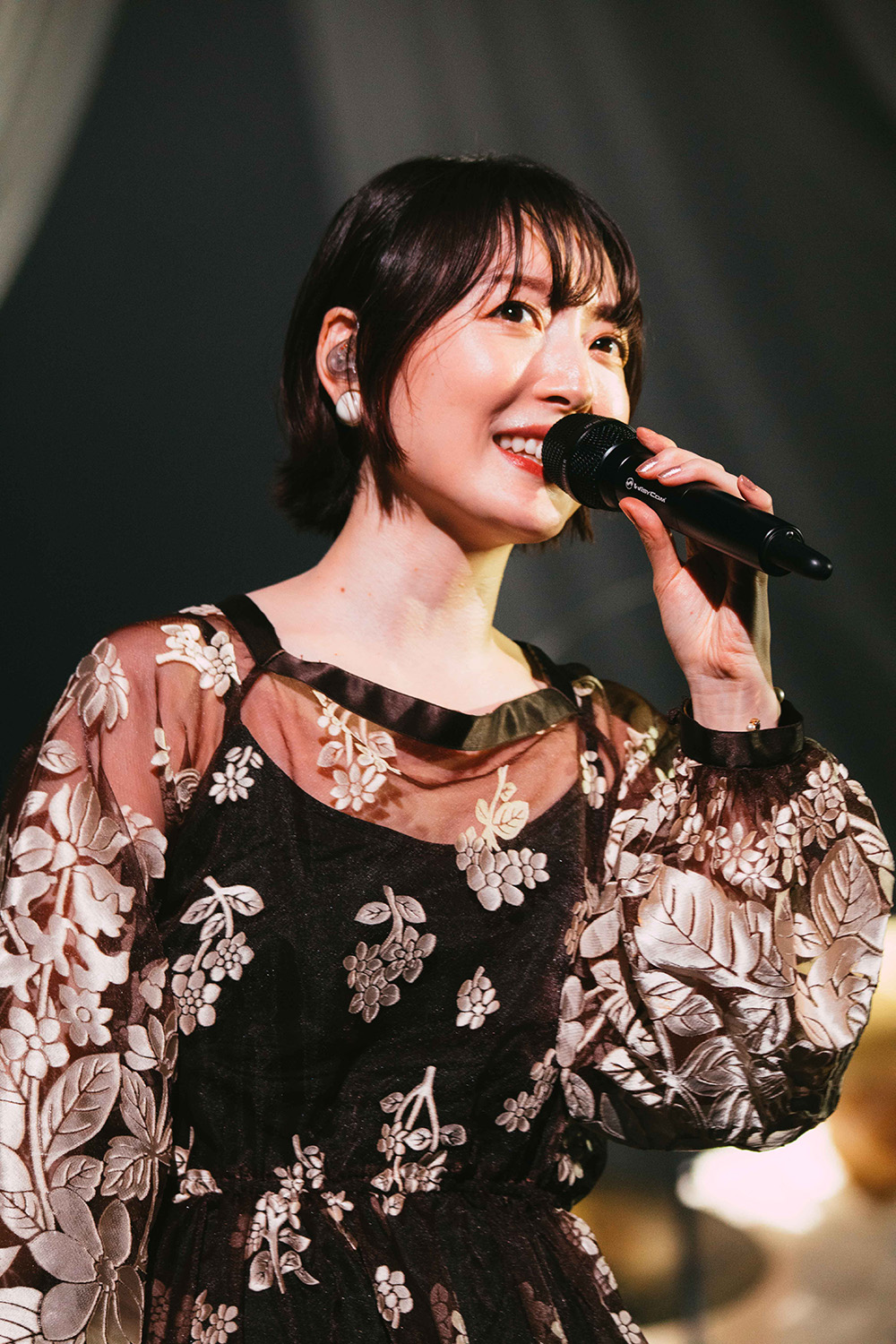 後半戦はここから「Groovy Mystery Train」「無邪気なキミと真夏のメロディ」「Eeny, meeny, miny, moe」と、どんどん熱く盛り上がっていく。「マラソン」の途中で振り上げた拳と、それに続くコールには頼もしさすら感じられた。「恋する惑星」でピュアな歌声とペンライトのピンク色で会場を染め上げて、本編も残すところあと1曲。それはもちろん、このライブのタイトルの由来ともなっている、放送中のTVアニメ『久保さんは僕を許さない』のオープニングテーマ「ドラマチックじゃなくても」。「今、この瞬間、目の前にいる大切な人たちに向かって歌いますので、ぜひ受け止めてください」と言って、心を込めて歌い上げた。
