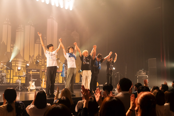 ライブ本編、アンコール含め全17曲を演奏、この日のワンマンの為に用意した新曲も2曲披露された。都会のビル群を背景にしたステージで、この日はメンバー3人にサポートメンバー坂本夏樹(G)、鮎京春輝(Key)を引き連れての5人編成でのライブで、普段の3人編成とは違うアンサンブルに観客は魅了されていた。