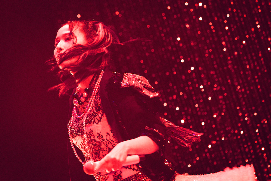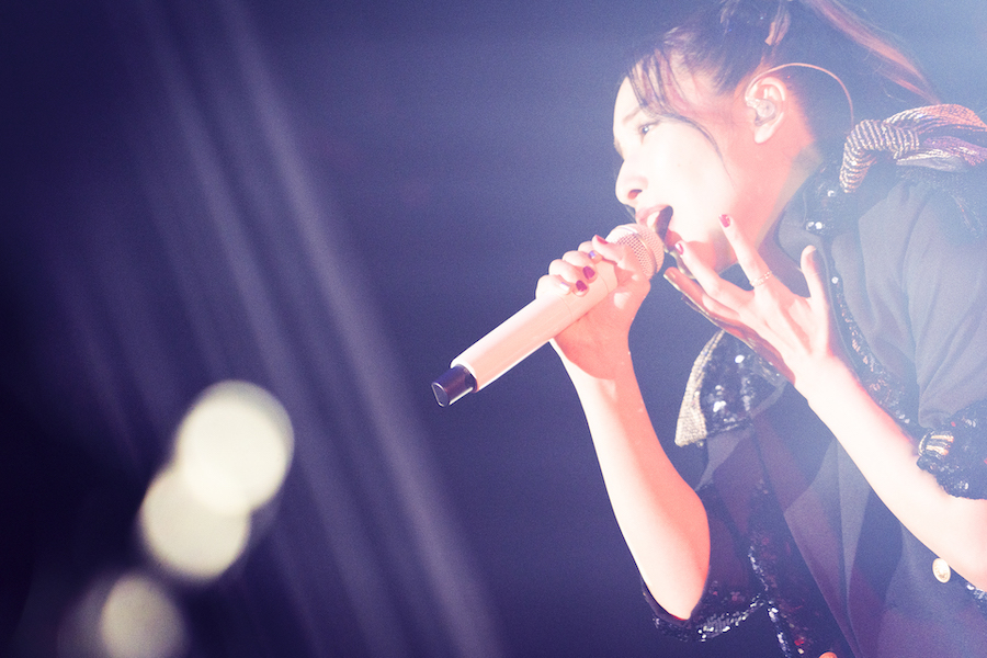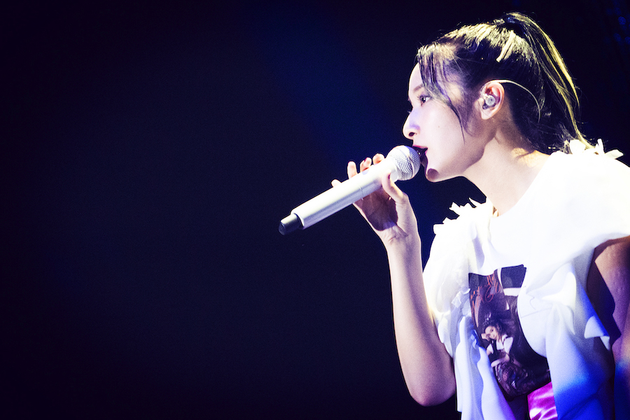 そして、ここからが夜公演での初出し情報。おもむろに彼女と多田がステージ上を去ると、ステージ後ろのスクリーンに映像が映し出された。この映像はシングル収録3曲のティザー映像であり、まさしく音源としては本邦初公開となる。ロック調でダイナミックな盛り上がり必至の1曲「Killer Bee」、日常の何気ない風景を切り取ったかのような歌詞と透明感あふれる歌声が印象的なバラード曲「愛したい毎日」、そして、彼女自身が作詞作曲を手掛けたレゲエ曲「Discover」と、彼女の多様性を象徴するような個性あふれる3曲。映像終了後、彼女曰く「Discover」は野外で皆で肩を組みながら一緒に歌うことをイメージして作った曲だとの言葉にファンは大喜びし、会場のテンションは何度目かのマックス状態に。