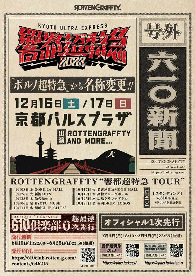 ROTTENGRAFFTY、冬フェス<ポルノ超特急>を名称変更し新たに<響都超特急2023>として2DAYS開催