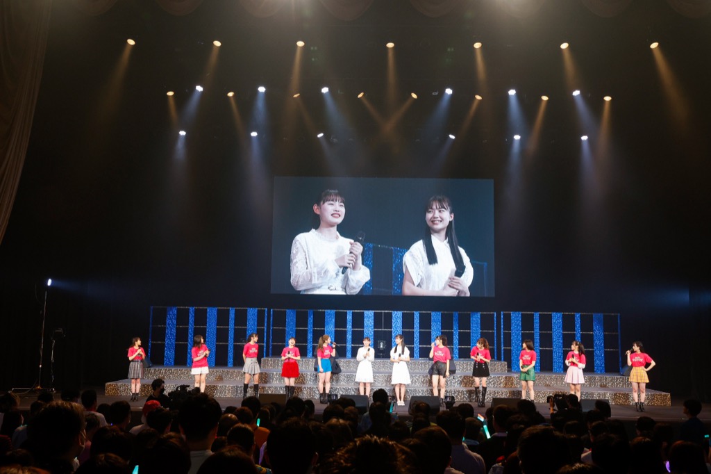 アンコール後のMCでは、5月23日(火)にハロプロ研修生からの昇格を発表した新メンバーの下井谷幸穂(しもいたに・ゆきほ/16歳)と後藤花(ごとう・はな/15歳)のお披露目が行われた。また、6月21日(水)の横浜アリーナ公演でアンジュルムを卒業する2代目のリーダー・竹内朱莉の後任となる3代目リーダーに上國料萌衣が就任することもサプライズで発表された。