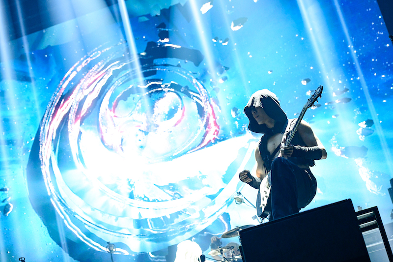 富士急ハイランド・コニファーフォレストで開催された昨年の<SATANIC CARNIVAL 2022>では大トリを務め、サウンドのみならず世界観をより表現した演出もあり、まさにワールドクラスのショウを見せつけてくれた彼ら。つい先日まで活動休止していたこともあり、このときを今か今かと待っていたオーディエンスからの凄まじい歓声とクラップが沸き起こり、「ただいま、サタニック!」とKoie(Vo)が叫べば、より増幅する熱。そんなムードの中、「Monolith」が叩きつけられるのだから、一気に最高潮まで駆け上がるのも当然だろう。襲いかかってくる轟音にオーディエンスも本気のヘッドバンギングで応戦し、お互いに一歩も引かない状態。Kazuki(G)は前のめりにフレーズを刻み込み、Tatsuya(Dr)も立ち上がってその熱を感じ取っていく。