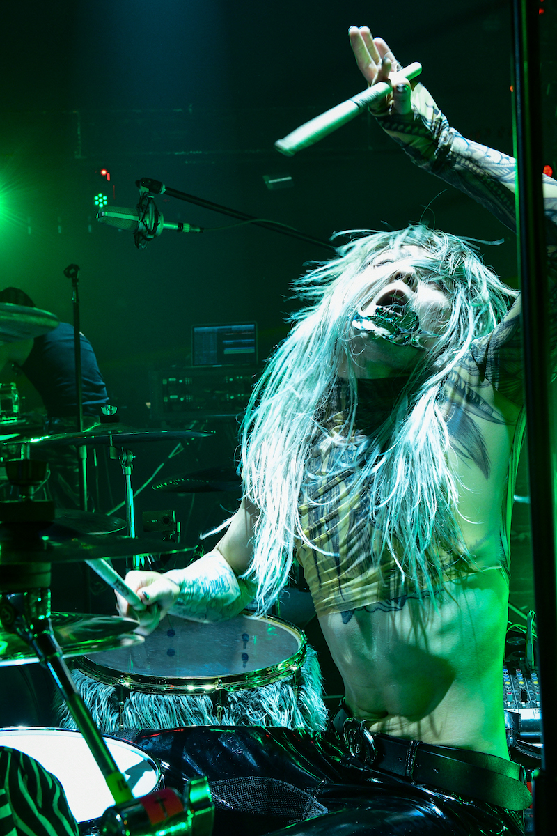 会場全体で盛大なカウントを決めて始まった「Xeno」はKoieとTeru(Prog, Vision)の咆哮も強烈だったが、終盤の厳かな歌声、超重低音、暴発気味な歓声が一体となった様が本当に異次元のインパクト。その状況を受け止めたKoieが思わず「ありがとう!」とつぶやくほどだった。どこまでも鳴り止まないクラップに嬉しそうにしつつも、「こんなもんですか?」とKoieが煽り、オーディエンスを信頼してるからこそ挑発していく彼ららしいところを見せると、フロアには巨大なサークルピットがいくつも出現。そこへ「Jägerbomb」を投下するのだから、そりゃみんな駆け出すし、腹の底から声を振り絞るに決まってる。土曜日の昼間からこんなイカれた遊びができるのは最高としか言いようがない。