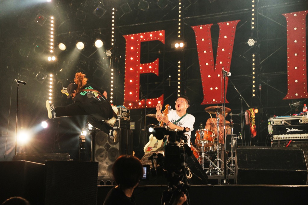 そう言ってダイナミックな「SLEEPWALK」で遊び心もふんだんなロックを聞かせると、ラストは全身全霊の高速2ビートによるシンガロングチューン「Get Started Together」で、観客のジャンプを高く高くしていく。凄まじく熱量の高い演奏と音量と、3人の気迫溢れるパフォーマンスがフロアに風を巻き起こしていく。そんなステージだ。