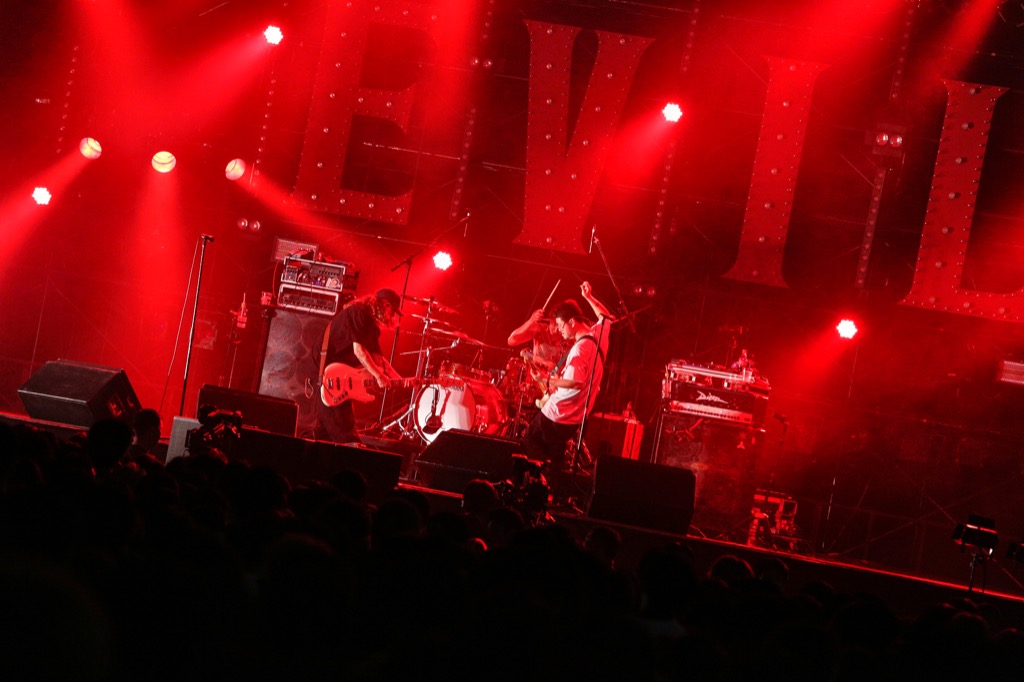 しかし後半は、再びカオスな展開に。チューニングしながらひずみとノイズが轟くアンサンブルを聴かせたかと思うと、「M.I.P.S」では重厚なリフと魔的にバウンスするビートで、観客を揺さぶる。めまいのするようなヘヴィさから一転して、「BLESS」は高速ビートを観客の体に打ち込んでいく。