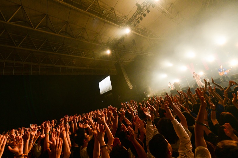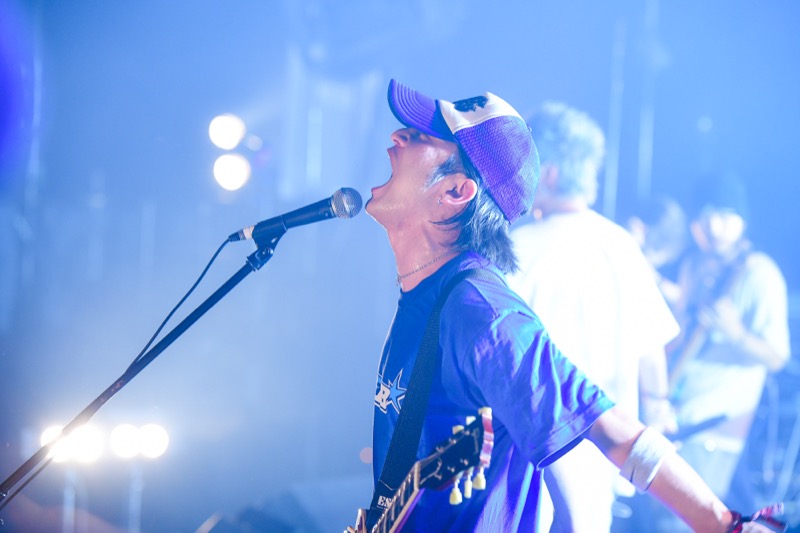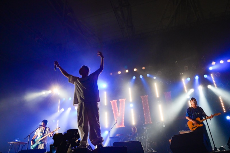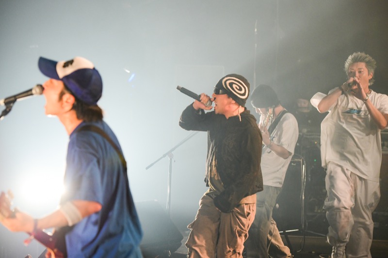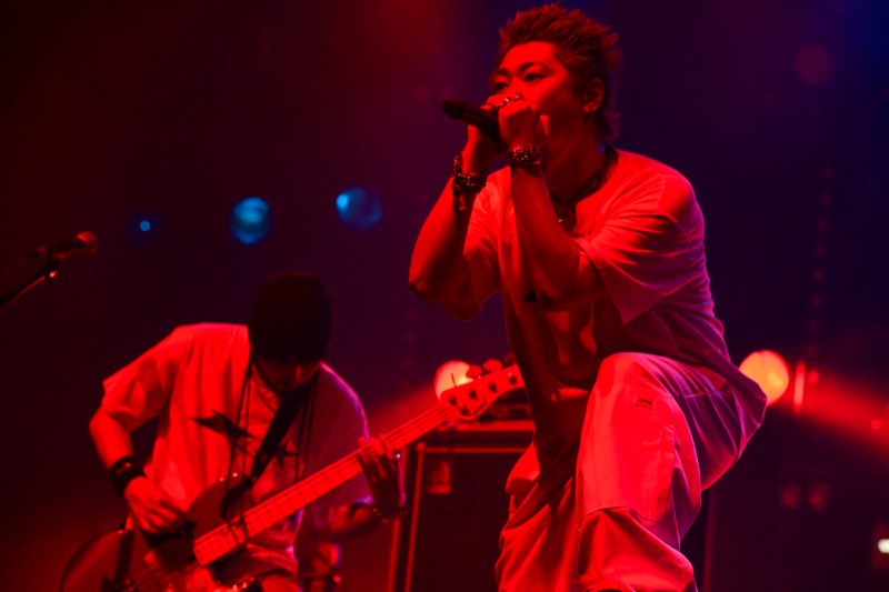 「今日、楽しみにしてきたんでしょ。普段、仕事がんばってるんでしょ。だったら、ムカつくこともあるじゃん。今日はそれをこっちにぶつけてこい!」──レゲエ風のイントロからテンポアップして、キャッチーな歌を聴かせるロック・ナンバーに変わる「Splash!!!」、アンセミックなポップ・ナンバーの「SCKOOL」と繋げ、ゴリゴリのラップ・ロック・ナンバーだけにとどまらない曲の振り幅を印象づけながら、徐々に観客の気持ちを一つにしていったタイミングで、ダメ押しで披露したのが、清水のリラックスした歌にJUBEEがコーラスを加える「Bad Morning」。