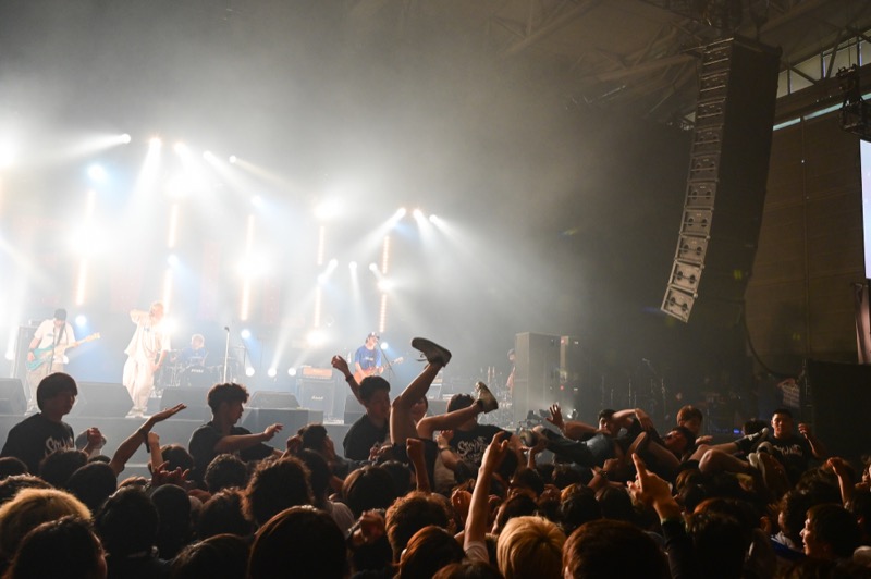 最後に演奏したのは、「Starlight」。JUBEEと清水が歌を繋げるエモーショナルなオルタナ・ロック・ナンバーを、曲の後半、JUBEEのラップがぐっと盛り上げる。そして、メンバー達が重ねるアンセミックなコーラスに応えるように観客は拳を上げたり、ダイブしたり、それこそJUBEEが言ったように好きなように暴れながら存分に楽しんだのだった。