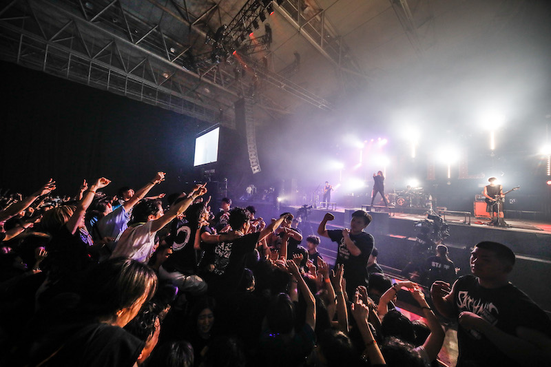 まっすぐにフロアを見つめ、切なる願いが叶うようにと「Paradox」をプレイし、ここからラストスパートだという宣言から「found & lost」を叩きつける。瞬時にオーディエンスも反応し、フォームなんか気にせず、心のおもむくままに大声を出し、拳を突き上げ、高く高く飛ぶ。ステージもより熱を帯び、Yoshが「己で作り上げてきたモノは己で壊し、己の力を使って進化していく」と7月から始まるワンマンツアー<TOUR 2023 “MAKE / BREAK YOURSELF”>のタイトルに込めた意味を大声で叫んでから、「システム化されてる場合じゃねえぞ、お前ら!」と焚き付けてから問答無用でぶちアゲる「Network System」でフィニッシュ。どこまでもたぎる想いがこれ以上ない絶景を描き出していった。