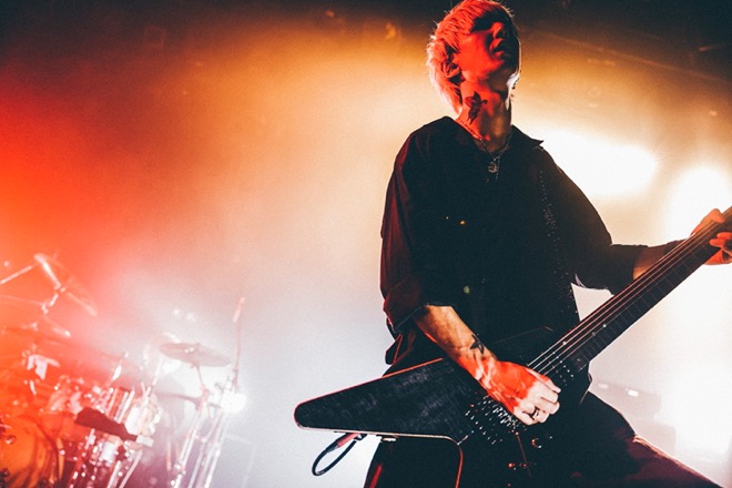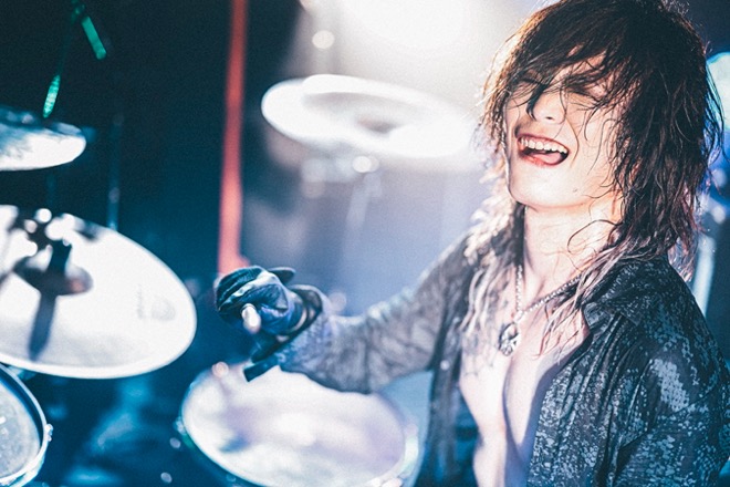 5人の音が生み出す熱は冷めることなく、そのまま「GLOSTER IMAGE」へ。Tohya(Dr)の正確かつ激しくダイナミックなドラミングが始まると、フロアはヘドバンの嵐に。Yuh(G)が速弾きで煌びやかなギターソロを披露すると、上手を中心に観客たちが咲き乱れる。海(G)はデスボイスを繰り出しながらライヴを盛り上げ、瑠伊(B)はステージ前方まで歩み出て華麗なプレイを見せつけた。