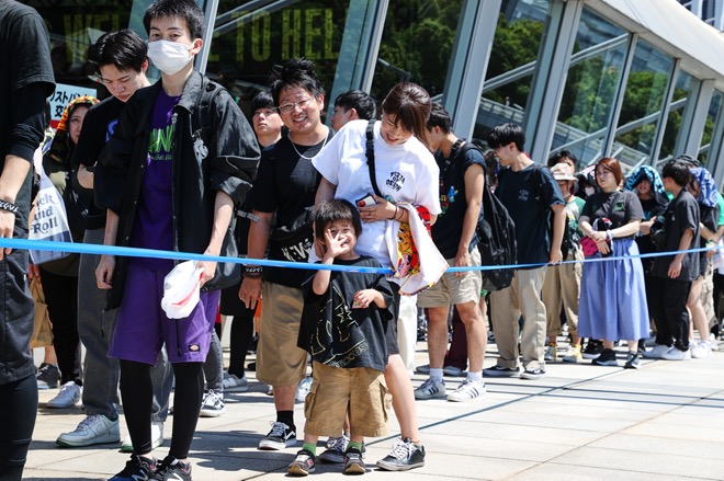 午前11時現在、幕張メッセ上空は晴天。最高気温は31度に達するとのことだ。EVIL STAGEオープニングアクトのPROMPTSに続いて、午前11時30分、SATAN STAGEではCrossfaithが咆哮を上げた。会場全体を震わす重低音が、フロアに逆巻く荒波を巻き起こす。明日2日目の大トリHi-STANDARDまで、この熱気は上昇気流を描き続けることだろう。