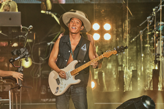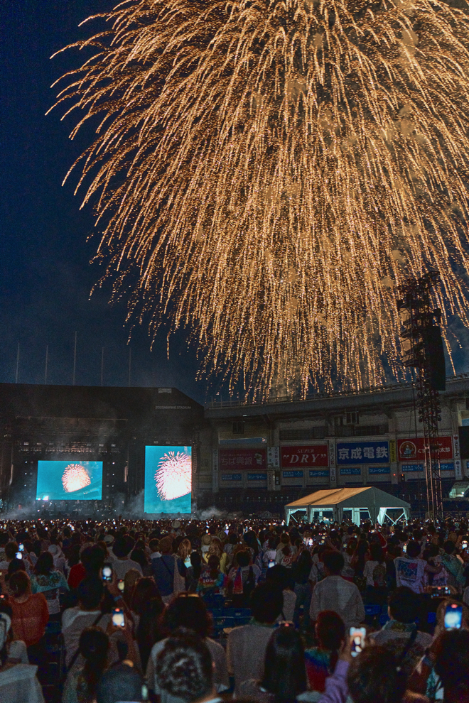 アンコールの最後には、10月から始まる自身初のアリーナツアーでの再会を約束し「また逢う日まで」をブルージーなギターソロとともに歌い上げると、ステージの裏には大きな花火が400発打ち上がった。