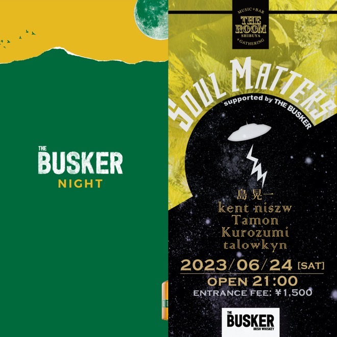 株式会社ウィスク・イーが販売するアイリッシュウイスキー「THE BUSKER IRISH WHISKEY」(以下、バスカー)が、音楽とアイリッシュウイスキーを楽しむバーイベント<Soul Matters supported by THE BUSKER>を2023年6月24日(土)より、<THE BUSKER NIGHT>を同月30日(金)より定期的に開催する。