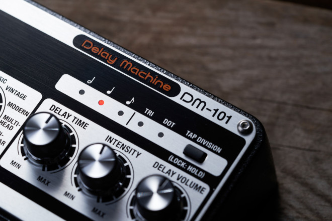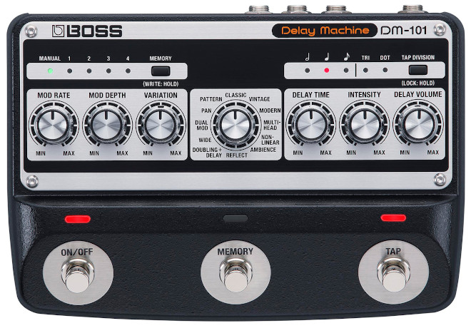 BOSSから、フル・アナログ回路による温かく包み込まれるようなディレイ・サウンドとCPUを駆使して実現した多彩なサウンド・バリエーション、現代のギタリストに求められる高い汎用性を備えたディレイ・マシン『DM-101』が7月15日に発売される。