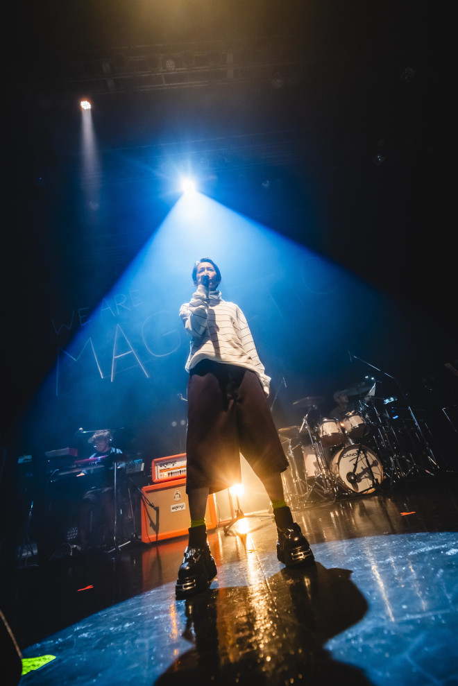 2022年12月にリリースした11枚目のアルバム『MAGNETIC』を冠にした全国5都市6公演を巡るライブハウスツアーのファイナル公演。2004年6月23日にメジャー1stシングル「Level42」でデビューしたカエラにとっては、メジャーデビュー19周年目を迎える記念日とも重なっており、ニューアルバムの楽曲を中心としながらも、代表曲「リルラ リルハ」やライブの鉄板曲「Yellow」を盛り込んだ特別な構成で全21曲をパフォーマンス。さらに、事前にアナウンスされていたSANABAGUN.の岩間俊樹(Mc)と高岩遼(Vo)に加えて、シークレットゲストとして、ニューアルバムに参加していたシンガーのAIがサプライズで登場。ステージ上では初となる生のコラボレーションで満員の観客を沸かせ、<TOUR FINAL&19th Anniversary>と銘打った1日限りのスペシャルなステージに華を添えた。