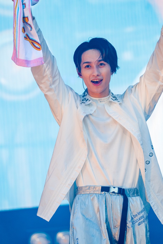 全員がSEIYAデザインのTシャツを着て臨んだアンコールでは、サプライズがあった。「The One」の電話パートに登場したのはなんとこの日不在のKEVIN。「もしもーしKEVINでーす」とスピーカー越しに明るい声が聞こえると、会場からは驚きのあまり悲鳴に近い歓声が。メンバーも驚く中、「本当に出たかった。でもね、一番良いところ僕とっちゃうからね」と宣言し、「本当に好き(笑)」と畳み掛けた。「ありがとう。まさかの電話KEVINでした」と目を丸くさせるFUMINORIと、「声聞けてよかった」と感激するメンバーたち。会場はこの日一番の歓声に包まれ、嬉しさのあまり泣きそうになっているバディの姿も見られた。