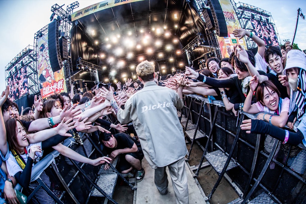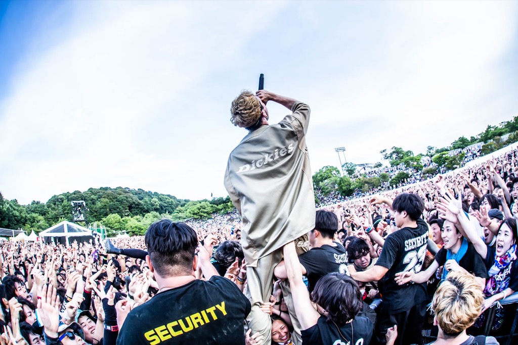 「さすがに緊張するって、2日目のトリ前ですよ。いきなり声出なくなりそうだった。なぜなら夢の場所なんですよ、ここはマジで。(今回で)3回目なんだけど、今でも夢の場所。毎年、大体のバンドマンは、この2日間スケジュールを開けてるんだ。でもそれは、ここに2万人が集まるからじゃない。フェスがどれだけでかくても、このメインステージに夢があるのは、主催してるやつがかっこいいからなんだよね。10-FEET、ありがとう。そんなかっこいい10-FEETがやる日本でいちばんヤバいフェス<京都大作戦>、おかえり! 俺たちは俺たちなりに、今日も爪痕残して帰ろうと思います」──Masato