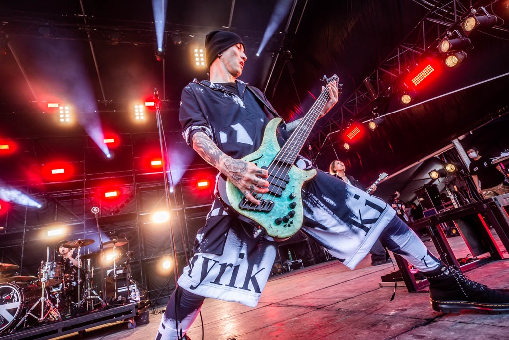 力強く宣言から続いたのは、豪快なシャウトとともに地面から揺らしていく低音が会場を襲う「The Revelation」。サビでは一転して、喉にエフェクターでもついてるのか?というクリーンなハイトーンでアンセミックに観客をひとつにするこの曲から、「PARADISE(Kill The Silence)」へとメロディアスな曲が続く。その最たる形のひとつが続く「THE SIDE EFFECTS」だろう。ミディアムでエモーショナルな歌を聴かせる曲で、ドラマ性の高いモダンなロックサウンドとなっている。いわゆるニューメタル、メタルコアに振っているだけでなく、メンバーのルーツやアイディアの幅広さや柔軟性、クリエイティヴィティでヘヴィネスを進化させている、奥深いバンドの肖像がうかがえる。