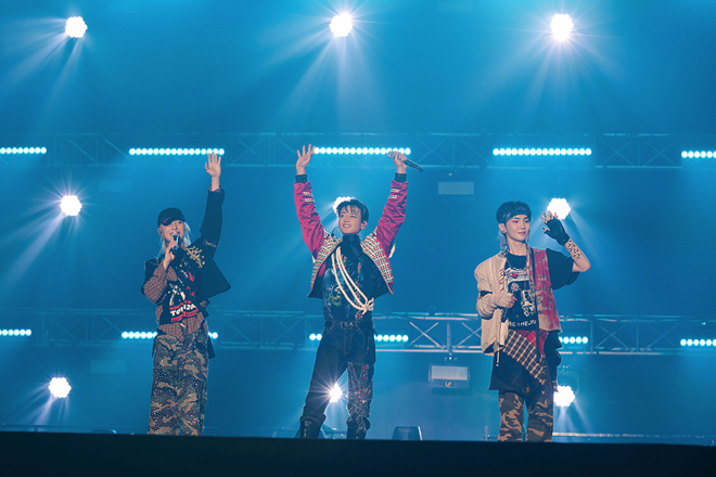 MCを挟むと、「Everybody」「View」といったヒット曲も交えながら、「Identity」「The Feeling」とさらなる新曲もお披露目。重く響くリズム音と高音の歌声がマッチした「Identity」は、ダンサーを交えないパフォーマンスだったが、見応え十分の迫力。一方、「The Feeling」は5月に開催したデビュー15周年記念ファンミーティングでも披露され、沖縄で撮影されたMVも話題となっているだけに、新曲にもかかわらずファンと合唱する場面も。温かな空気が会場を満たし、メンバーたちもバックステージや花道などを走り回って観客に笑顔を向ける。