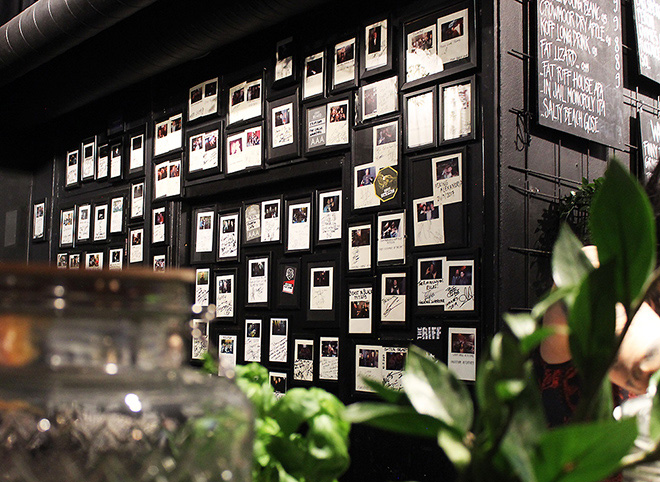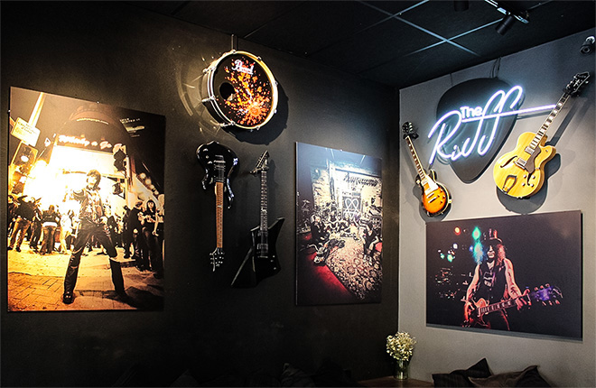 The Riffの店内にはバンドの写真や寄付されたギター、訪れたバンドマン達の写真とサインなど飾られてます。