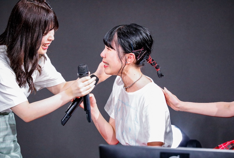 最後の楽曲の前には告知があり、2ndシングルの制作が決定したことが明かされた。客席からのお祝いの拍手が鳴り響く中、突如ステージが暗転。事前に知らされていない演出にたじろぐキャストをよそに、ステージ上のモニターにはこれまでの活動の労をねぎらうスタッフからのメッセージが流れ始める。そして映し出された衝撃のひとこと──「うたごえミルフィーユは終了します」。