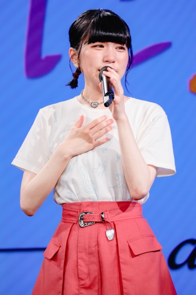 綾瀬は「本当にありがとうございます。いつかアニメになりたいなと思っていたけど、まさか本当につくっていただけるとは。メンバーの皆もそうだし、ファンの方もそうだし、作品を生み出してくれたスタッフの方に感謝です。私は小さい頃からアニメが大好きで、自分がアニメに出ることは夢だったので嬉しいですし、それが皆と一緒にできることが嬉しいです。『うたごえはミルフィーユ』をもっと大きくできるよう頑張りますので、引き続き宜しくお願いします!」と涙ながらに感謝の気持ちと決意を述べた。