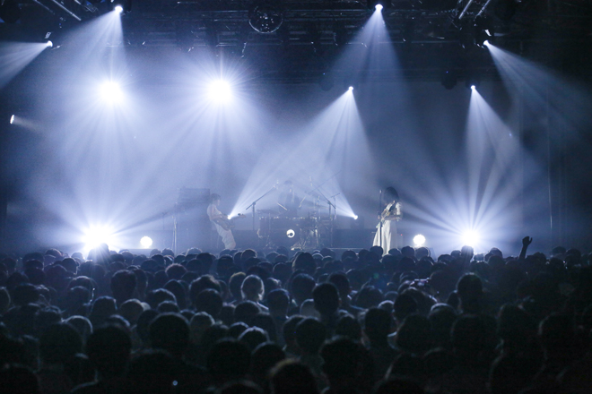 後半、「光るとき」、「マヨイガ」、「OOPRATS」など最新アルバム『our hope』の楽曲を中心に披露。ベースの河西ゆりかのコーラスがボーカルにうまく相まって、カラフルかつユニークな景色を紡ぎだしていた。そして聞き逃せないのはフクダヒロアの簡潔に表現された力強いドラムだ。まるで1日の疲れを一つ一つ叩き落としてくれるような潔さが本当に爽快だった。さらに「あいまいでいいよ」ではサビで大合唱が起こり、海外初ワンマンライブとは思えない盛り上がりを見せた。