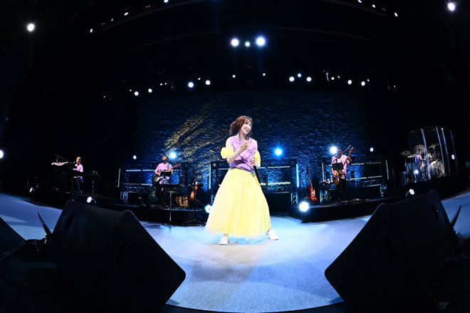 そしてMCをはさみ、森口が「『機動戦士Zガンダム』の主題歌、水の星へ」と呼びかけ、客席が「愛をこめて」と応じ、自身のデビュー曲の「水の星へ愛をこめて」を、当時と変わらぬ、さらにキャリアを重ねて磨き上げられた柔らかで深みあるトーンで歌唱。続けてライブで披露するのはレアな楽曲「星空のBelieve」を披露。本人も会場も楽曲に酔いしれていた。