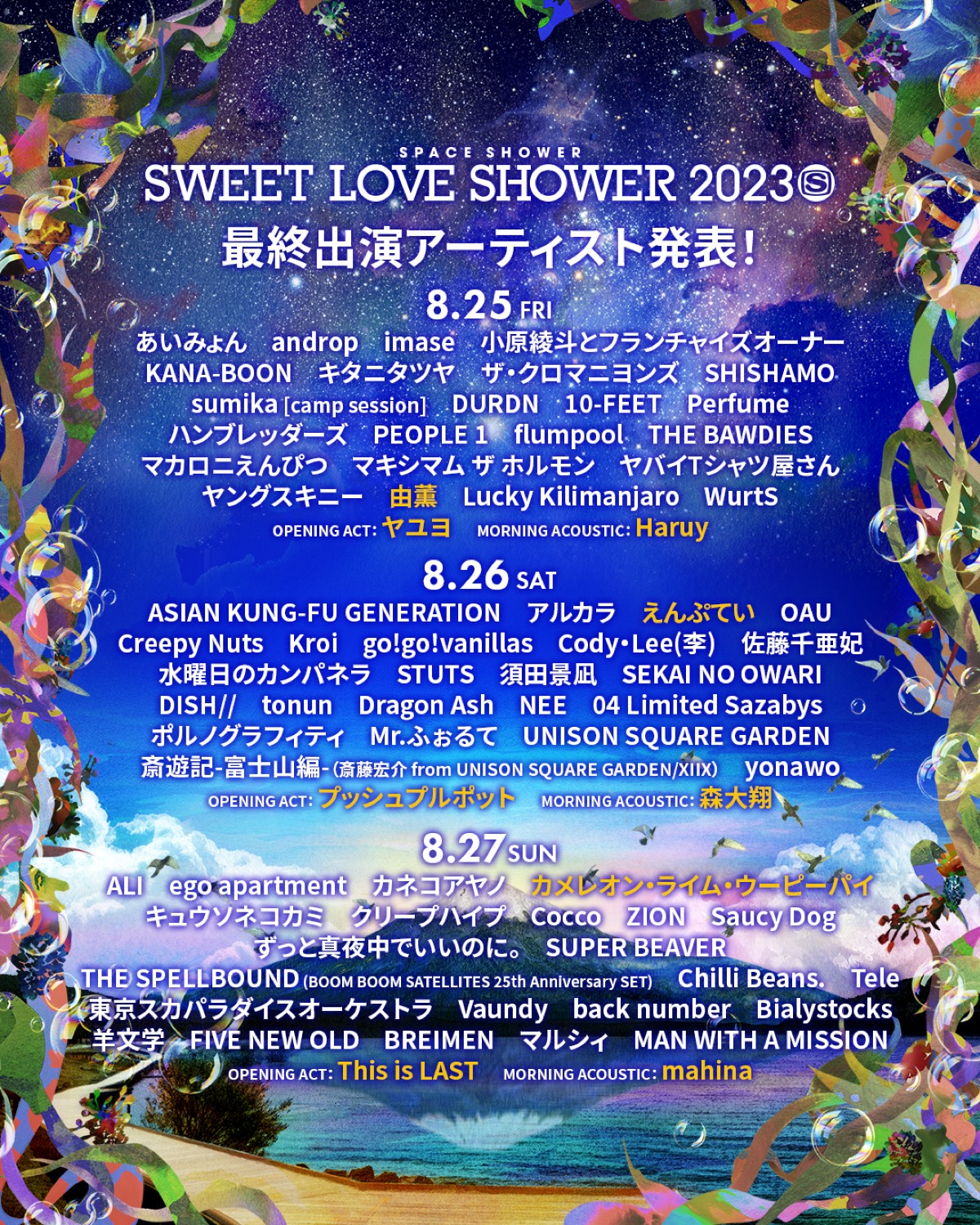 <SWEET LOVE SHOWER 2023>最終出演アーティスト9組発表