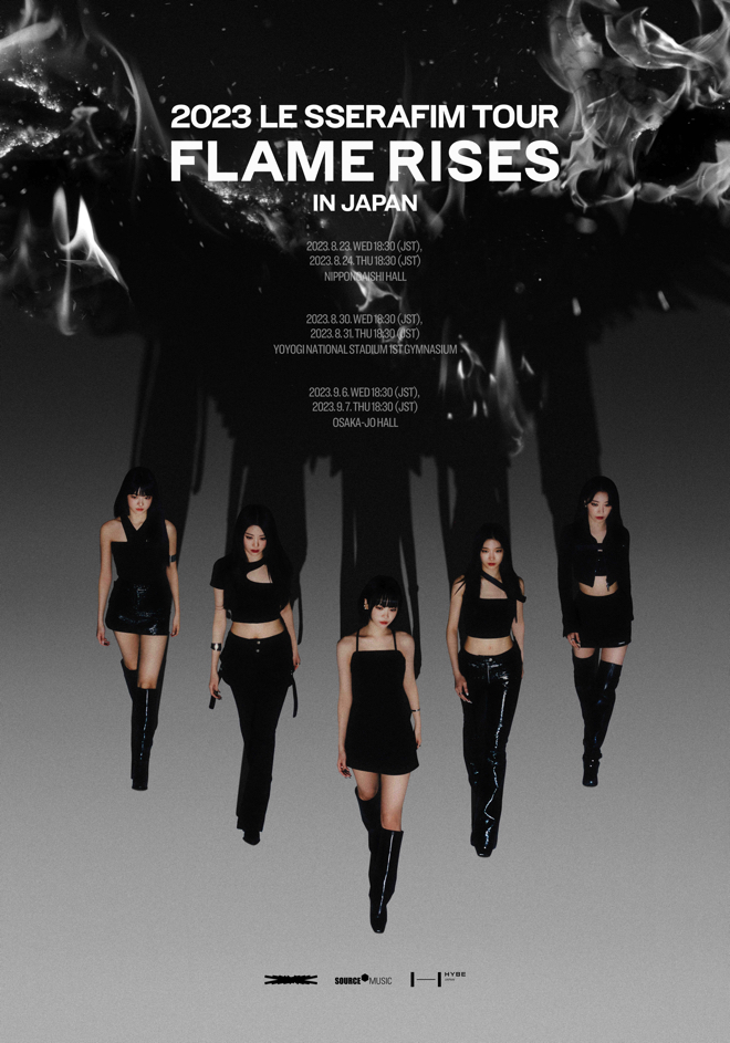 同ツアーでは8月12日と13日のソウルから10月7日と8日のバンコクまで、7都市で計12公演が行われる予定。日本公演<2023 LE SSERAFIM TOUR ‘FLAME RISES’ IN JAPAN>は、8月23日と24日に愛知・日本ガイシホール、30日と31日に東京・国立代々木競技場 第一体育館、9月6日と7日に大阪・大阪城ホールで開催される。