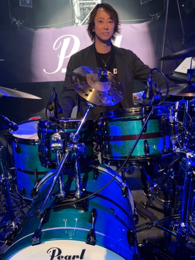 最初に登場したドラマーは鶴谷智生。30年以上のプロキャリアを誇るドラマーで、様々なアーティストやバンドのライブやレコーディングで活躍。ジャズやポップス、ロックなどジャンルを問わないオールラウンドプレイヤーとしても知られている。その鶴谷がこのイベントで叩くのは、パールの伝統を引き継ぐシェルを持つMasters Maple。
