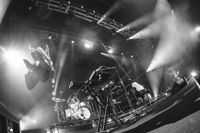 その後、「いいんですか?」、「君と羊と青」と続いたアンコール。さらに「どうせなら、もう1曲やるか! 歌えるかわかんねぇから、おまえらも歌えよ。38年も生きてきたと思うと、ゾッとするんだけど(笑)、でも、自分が想像していたどんなパターンの38歳よりも今が一番幸せです! ああ、一瞬ヤバくなりそう(泣きそう)だったから、振り切っていくか!」と、洋次郎が咆哮し、ツインドラムが予定になかった「DADA」のロールを鳴らし始める。そこからはもう、バンドとオーディエンスは全身全霊を尽くすようにして音楽を分かち合い、忘れがたいライブは幕を下ろした。
