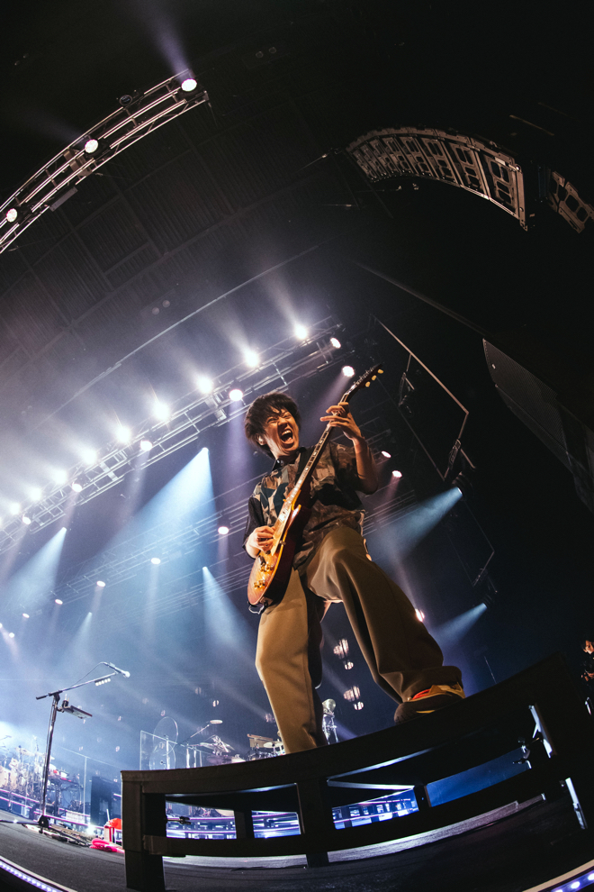 「日本語が通じるというのは最高です(笑)。海外ツアーに出て、肌の色も髪の色も目の色も違う人たちが、ここにいるみんなと同じように全力で、日本語で歌ってくれる姿を見て、俺はすげぇ誇らしい気持ちになる。でも、やっぱり日本に帰ってきたら“ああ、やっぱりここが俺らの国なんだな”って再確認できます。こんな熱量でみんなが迎えてくれるのは、ただひとつこの国だけなんだなって思わせてくれる。ありがとうございます」