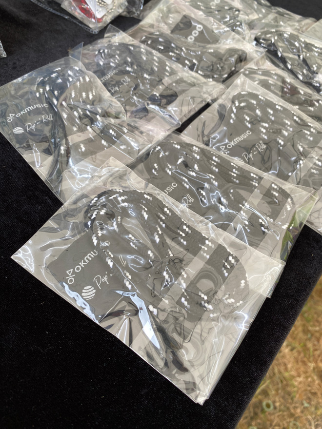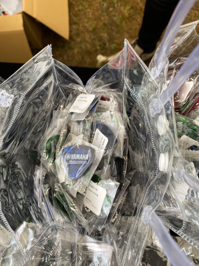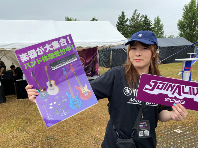 YAMAHA&BARKS楽器人のコラボブースの一番の目玉は、誰でも簡単にバンド体験ができるという、珠玉の音出し経験だけれど、同時に<JOIN ALIVE 2023>の思い出をさらに特別なものにする、様々なグッズもご用意中。
