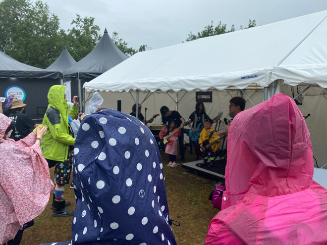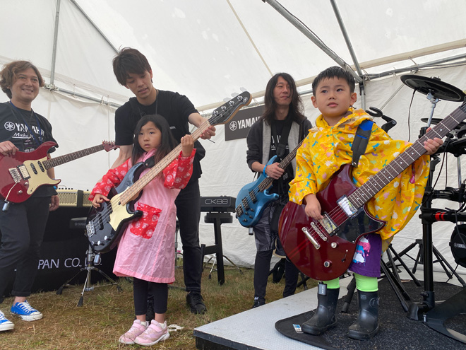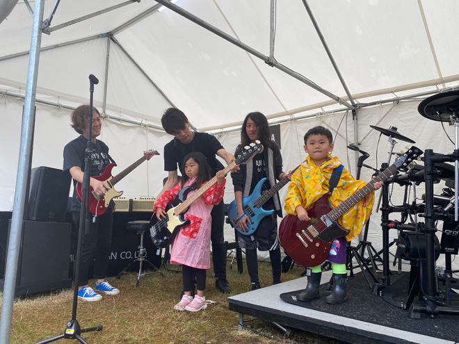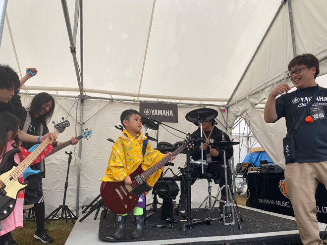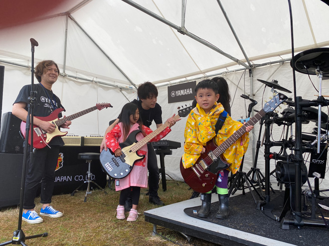 周りを取り囲むオーディエンスからは笑顔で拍手が生まれ、親御さんや友達の楽しそうな笑顔こそ、何にも代えがたい幸せの泉だ。ここは既に音楽の天国。まだまだバンド体験は続きます。