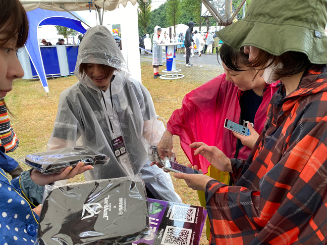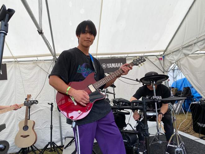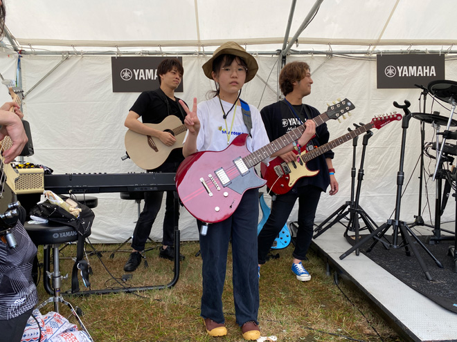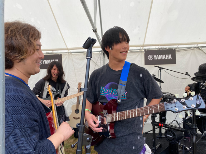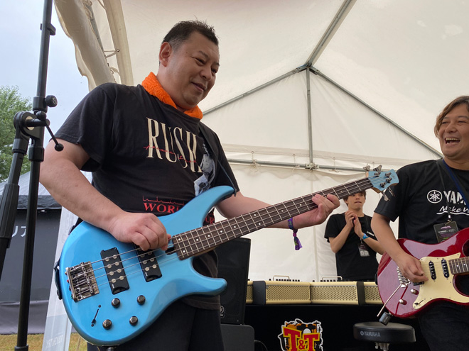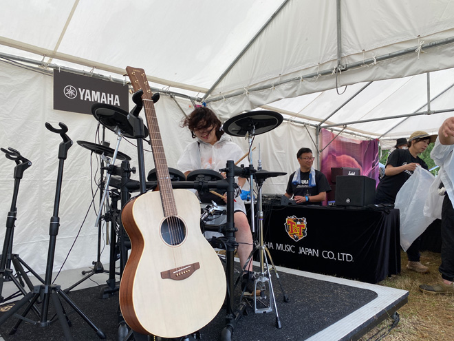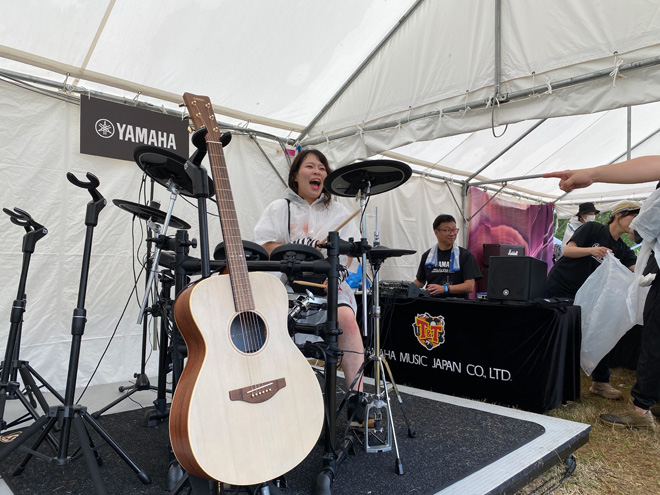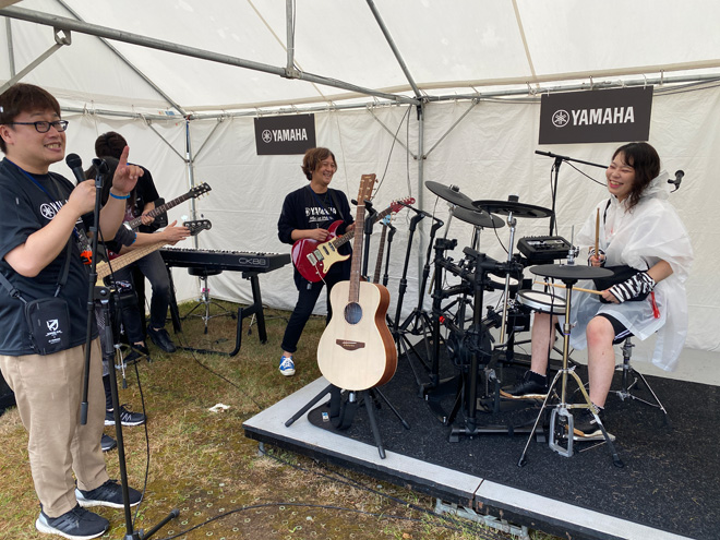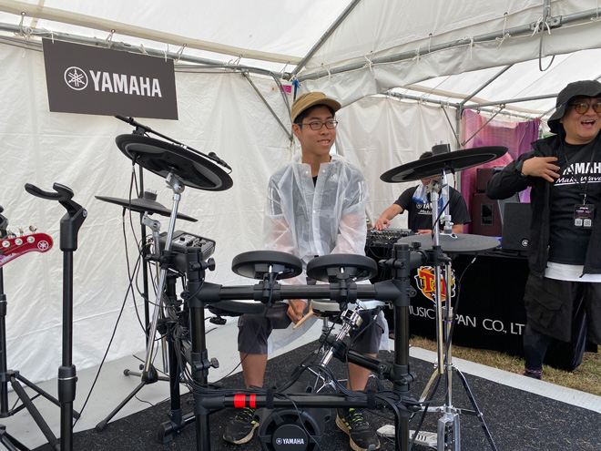 なにより、我らがYAMAHA&BARKS楽器人のコラボブースが、雨を吹き飛ばすように熱い。腕に自信アリのお父さん、バンド始めたばかりのお兄さん、全く楽器を触ったことのないカワイイ僕ちゃん…本当にいろんな人達が、バンドサウンドに吸い込まれるようにブースに集まり、楽器を手にし始めた。