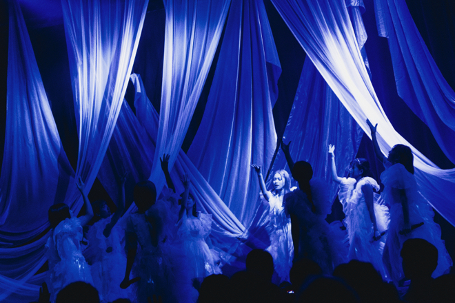 場内に波の音が響き渡り、深海をモチーフとした薄暗い舞台にまなみとみのりが静かに登場する。波の音の中ピアノの旋律が鳴り響き、その音に合わせてみのりが歌い始める。ふたりで歌われた「詩空(しずく)」はとても儚くも美しく、「unSea=under the sea」の世界観を彷彿とさせるような神秘的なオープニングとなった。