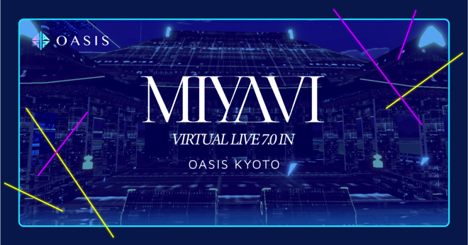 イベント内容:2021年9月に京都 清水寺で行われた<MIYAVI Virtual Live 6.0 in 京都・清水寺 “MIYAVI in KIYOMIZU”>のパフォーマンスのデジタルツインになる本イベントは、メタバース都市「OASIS KYOTO」のサイバー清水寺にて開催。イベントではスペシャルムービーの投影やアバターのMIYAVIによるパフォーマンスを予定