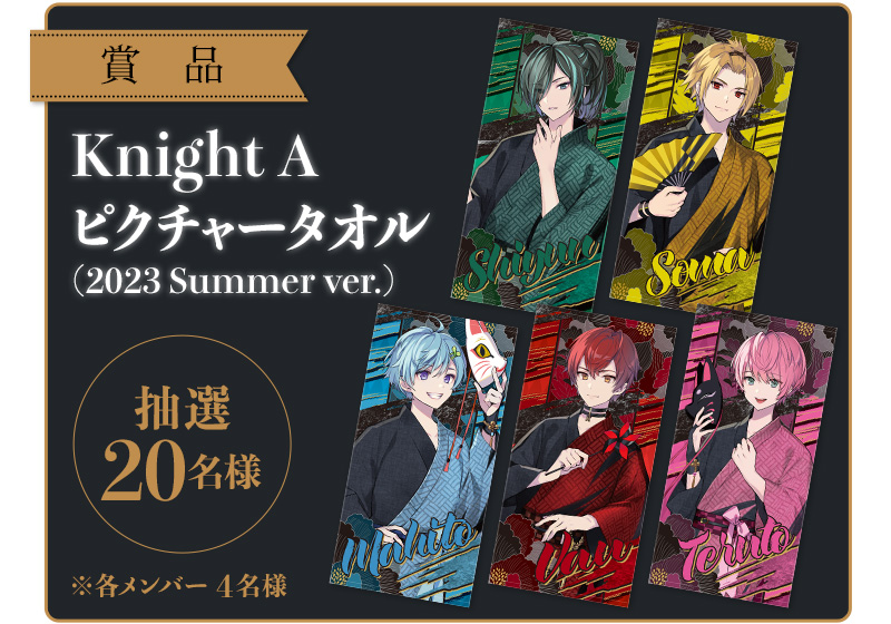 賞品:Knight A ピクチャータオル(2023 Summer ver.)…抽選で20名様 ※各メンバー4名ずつ当選