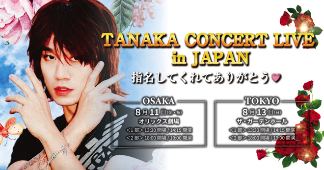 TANAKAの日本で初めてのコンサートとなる<TANAKA CONCERT Live in Japan 指名してくれてありがとう♡>では、8月11日の大阪・オリックス劇場と13日の東京・ザ・ガーデンホールの2会場で計4公演が行われる予定となっている。チケットは7月22日より販売中。東京公演にはちゃんみながゲスト出演する。