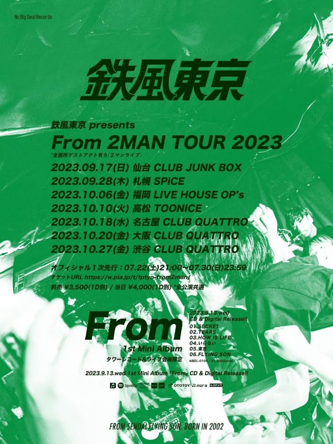 鉄風東京が9月13日に1stミニアルバム『From』をリリースすることを発表した。また、同作をひっさげてのツーマンツアー開催も決定している。