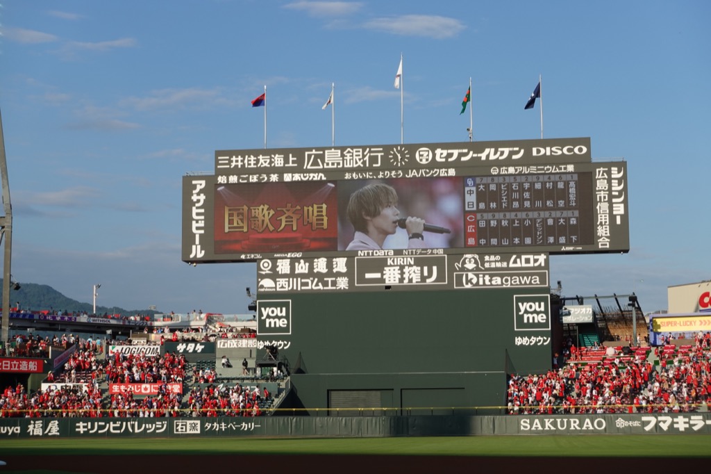手島章斗、地元広島のマツダスタジアムで国歌独唱。「真っ赤に染まっているズムスタ、最高です!」