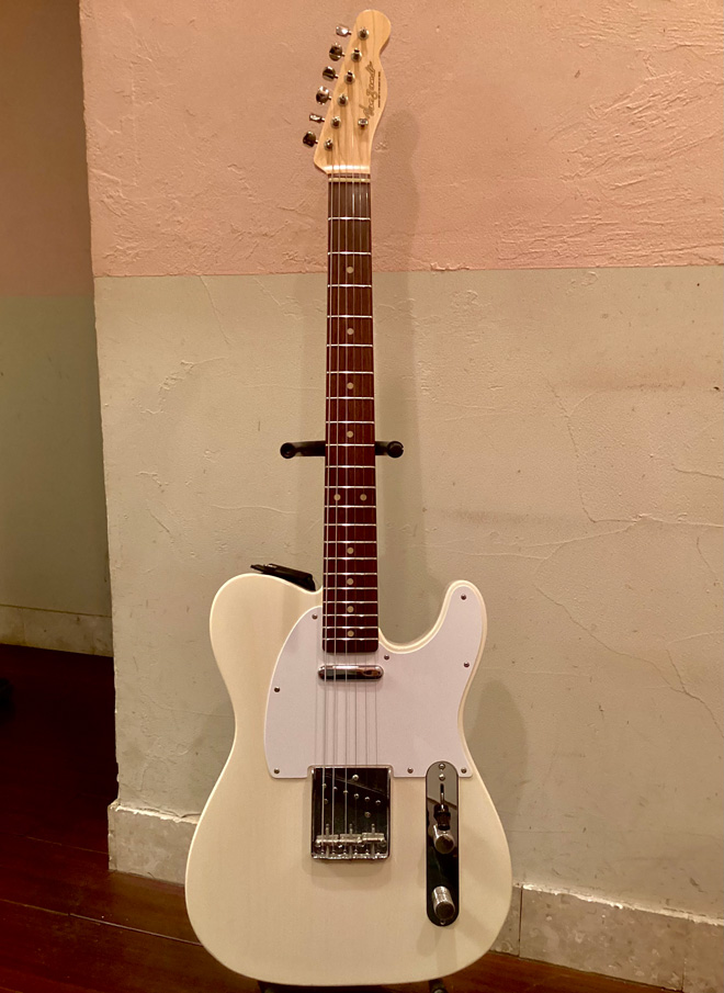 ブロンドのアッシュボディーにスラブのローズ。重さ3.0kg。ピックガードのフィルムも剥がしていないほぼ未使用。実はこの前週、よく憶えていませんが何故か試奏していたのでした。テレタイプは初めてで不慣れなせいか、サドルのイモネジに引っ掛かりおぼつかなかったものの、特にリヤの低音にはびっくり。一週間無意識のうちに想っていたようです。