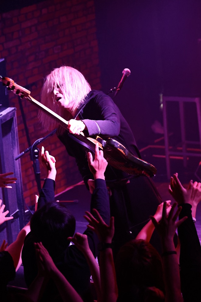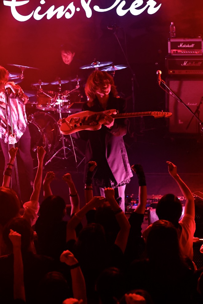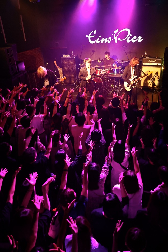 なお、これに続いたダブルアンコールでは「The Prayer」にてHirofumiがフロアに向かって身を投げ出すほどの熱演をみせたほか、一向にやむことがないアンコールの声に応えてのトリプルアンコールとして再びの「Dear Song」が奏でられ、ここでは敢えて曲のほぼ大半をオーディエンスに歌わせるという一幕もあり、結果としてこの<Eins:Vier LIVE2023 “…from Dear Songs 1995@御堂会館”>は過去にとらわれるのとは全く違う、過去をふまえたうえで現在を生きるEins:Vierというバンドの頼もしい姿を存分に実感出来る場、となったように思う。