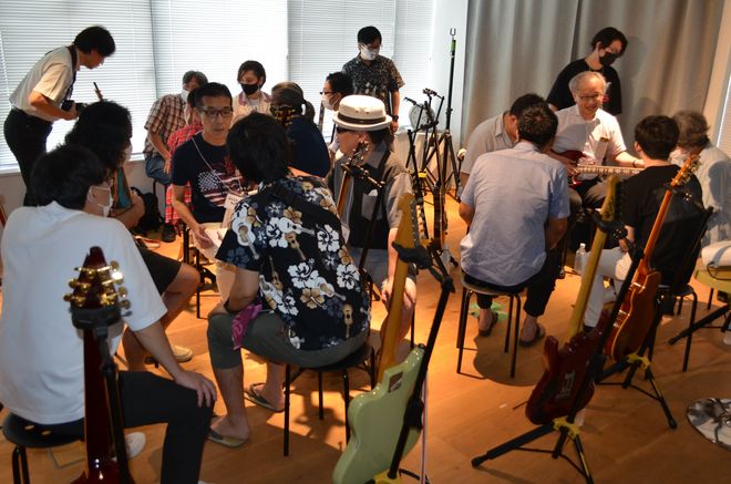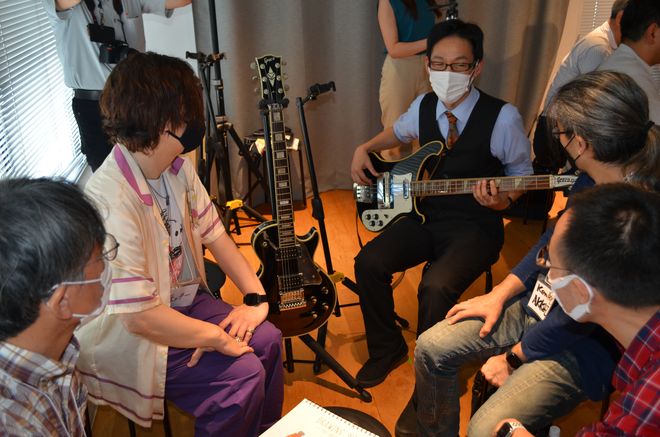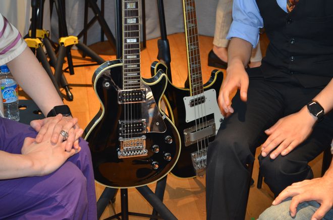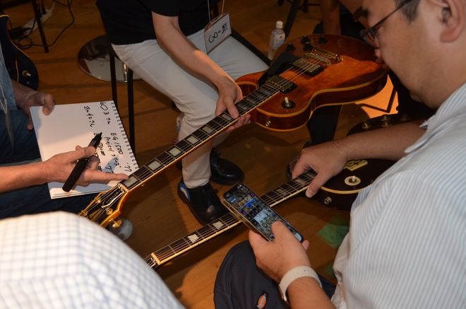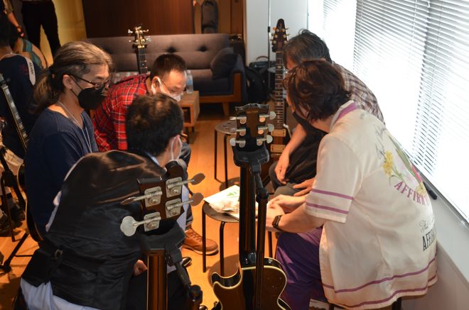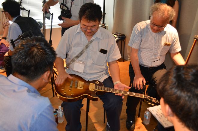 自分が持参したギターそっちのけで、レアなギターや名機と言われたギターに喰いつき、目を輝かせながら、そのギターに関する質問を矢継ぎ早に繰り出すファンたち。その瞳はまるで、エレクトリックギターに目覚めた思春期の少年のものそのものだ。お小遣いが少なくて買えなかったあのレス・ポール・タイプ。雑誌で穴のあくほど見つめたリッケンバッカー・タイプのベース。仲間とバンドを組んで立ったステージの匂い。そういう思い出を共有できる喜びに、みんな興奮しているのがすごく良い風景に映る。