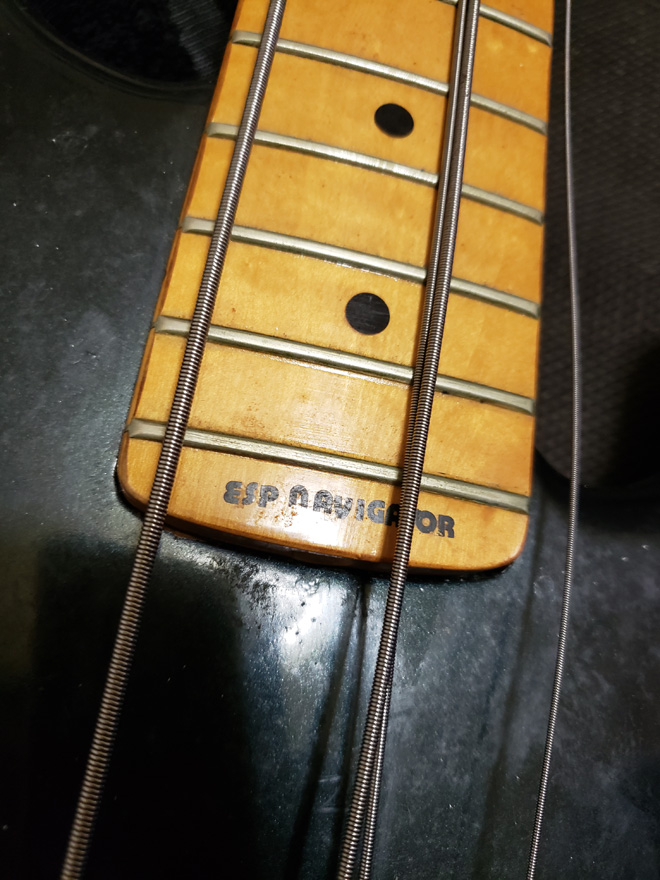 とにかく雑に分厚く塗られた塗装、多分前のオーナーが矢沢永吉風にするためにちょんぎってしまっただろうピックガード、ネックエンドに意味深に貼られた「ESP NAVIGATOR」のデカール、とにかく謎だらけの見た目に惹かれて即お持ち帰り。