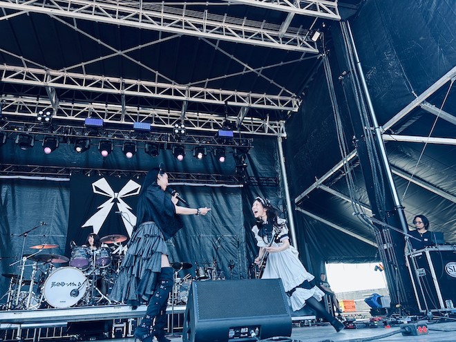 続く「endless Story」ではこの日も高々と手を挙げシンガロングする姿が徐々に広がっていく。フェス出演を重ねる毎、着実にファンを増やしていっていることが客席からも如実にわかるほどに、BAND-MAIDの最近の躍進は目に見えて証明されている。