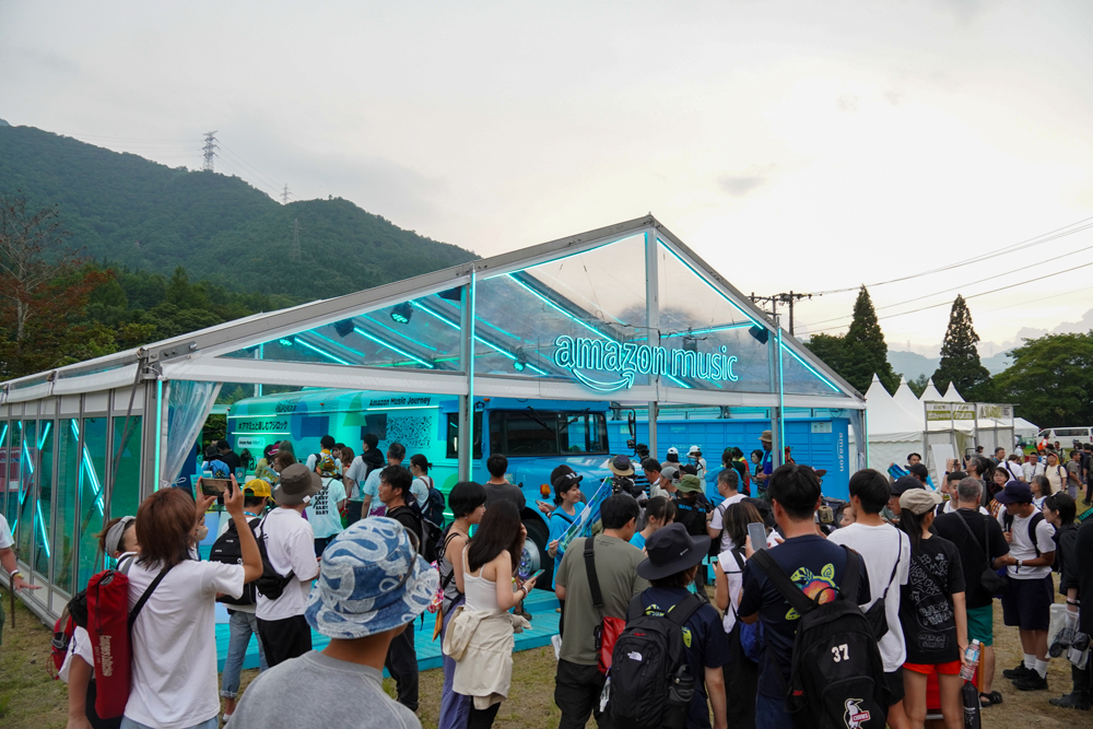 <FUJI ROCK FESTIVAL ’23>が7月28日(金)〜30日(日)に新潟県・苗場スキー場で開催され、7月27日(木)の前夜祭から延べ4日間で114,000人が来場し大盛況のうちに終了した。ヘッドライナーのザ・ストロークス、フー・ファイターズ、リゾをはじめとする200組を超えるアーティストが記憶に残るステージを披露するとともに、さまざまなアクティビティも登場した会場でひときわ目を引いたのが、鮮やかなブルーのバスがシンボリックなAmazon Musicのブースだった。