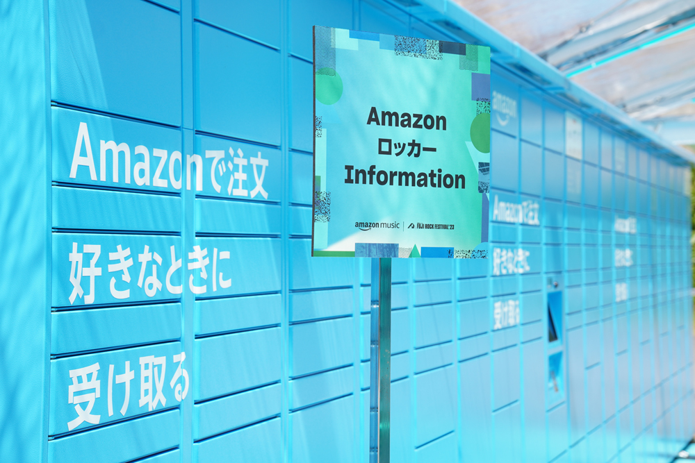 そんな異空間を味わえるブース内では、無料WiFiや無料のスマホ充電器も自由に利用できた。連日賑わいを見せていたのも納得の充実したブースであるが、これらに加えて、Amazon.co.jpで購入した商品をピックアップできる「Amazonロッカー」も印象深い。<コーチェラ>でも導入された「Amazonロッカー」は、フェス会場に商品が届くというなんとも心強い画期的なサービスで、フジロックに欠かせないアウトドアチェアなどが注文され活用されていた。全長4kmにも及ぶ広大なフジロックの会場において、入場ゲートの直前に位置するイエロークリフエリアのブースで必要なアイテムをすぐにピックアップできるのはとても便利で重宝されたもようだ。