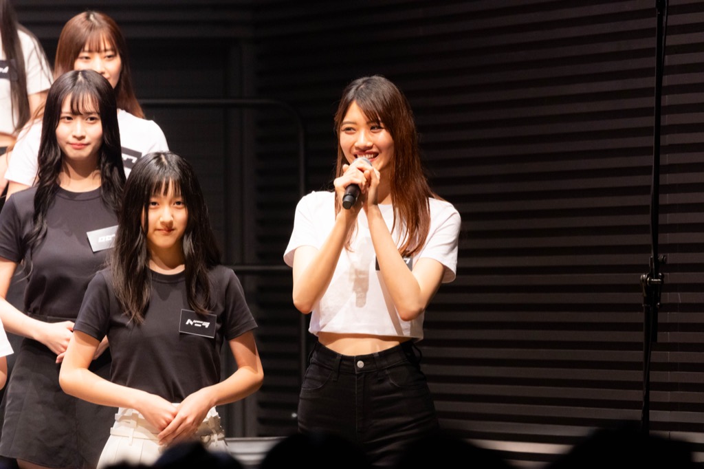 全てのメンバーが登壇後、司会者から今の気持ちを聞かれると、代表して最年長25歳のアヤチャンは「今日はここに立つことができて、本当にすごく嬉しいです。この機会に感謝をして、精一杯全力で頑張りたいと思いますので、応援宜しくお願いします。」と答え、最年少12歳のバニラは「すごく緊張していますが、自分なりに精一杯頑張りたいと思います。お願いします。」と本日から始まる合宿からのFinal Stageに向けての意気込みを語った。