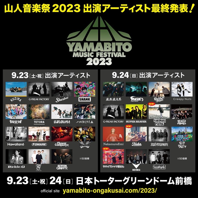 亜無亜危異/Age Factory/OVER ARM THROW/Creepy Nuts/G-FREAK FACTORY/SUPER BEAVER/竹原ピストル/10-FEET/NakamuraEmi/NUBO/BRAHMAN/HEY-SMITH/ヤバイTシャツ屋さん/RED ORCA/locofrank